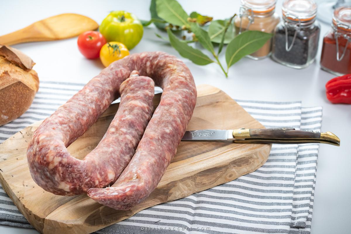 Saucisserie : saucisse fraîche de Toulouse, chair à saucisse, farce à tomate prête à l'emploi, merguez, chipolatas, andouille (saucisse de couenne).