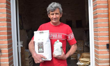 Situé sur la commune de Cuq à 7 kms de Lautrec, Sylvain Maraval est la 6ème génération de Paysan sur la ferme et à cœur de perpétuer le travail que les anciennes générations ont accomplis. Après mon installation en 2013, je décide d’orienter ma production sur la culture de céréales et de légumes de plein champ. Ayant la chance d’appartenir au territoire de l’ail rose de Lautrec, je décide de me lancer dans cette production, en étant fier de cultiver une production sous signe officiel de qualité reconnu. Ayant la volonté de me diversifier, je choisis de mettre en place un complément de gamme en introduisant dans mon assolement des oignons, des échalotes, des courges (potimarrons, butternut, musquée de Provence), Patate douce (chair orange et violette), et enfin en 2021, un atelier asperge verte. En introduisant ces cultures maraichères sur l’exploitation, j’avais à cœur de prendre en main leur commercialisation, c’est pour cela que j’ai créé en 2016, la structure COULEURS D’AUTAN. Nous proposons à nos clients, selon le cycle des saisons, des produits de qualité, sains et respectueux de l’environnement. En adhérant au groupe Dephy, je me suis engagé à réduire sur mon exploitation l’usage des produits phytosanitaire en les substituant par des préparations naturelles. En adhérant à la marque Saveurs du Tarn, je veux que mes produits soient plus consommés localement !