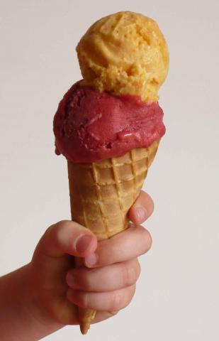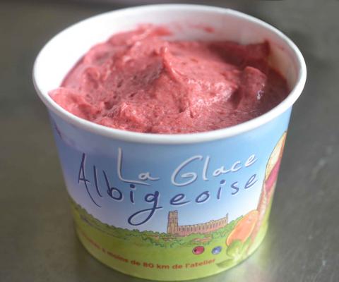 Les sorbets ne sont pas une glace à l’eau comme on l’entend trop souvent : ici, à la Glace Albigeoise, les sorbets sont des glaces aux fruits avec 55 à 80 % de fruits, soit beaucoup plus que le minimum réglementaire de l’appellation « plein fruit » (45 %).