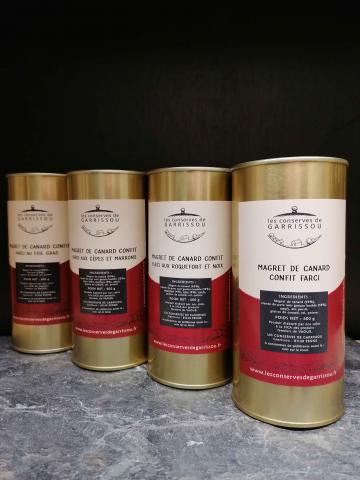 Magret confit farci : nature, noix-roquefort, cèpes-marrons, foie gras