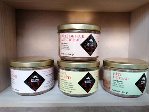 Pâté de veau, pâté de foie, pâté de foie au cognac, pâté de tête